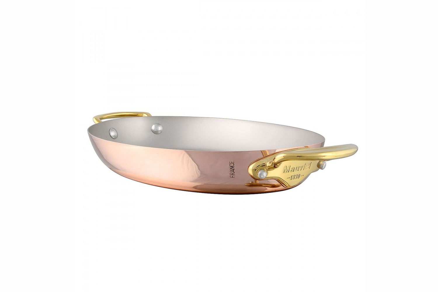 מחבת נחושת/נירוסטה 2 ידיות אובל – אורך 40 ס"מ / גובה 6 ס"מ